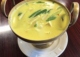 Serves 8. With your choice of protein, coconut milk, green beans, lime leaves, and basil.